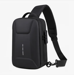 A Mochila Transversal Mixi (7L, preta) é perfeita para uso urbano masculino, com material impermeável, entrada USB, trava antifurto e 5 bolsos.