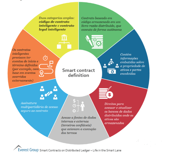 A aceitação generalizada da tecnologia por instituições financeiras, bolsas de valores e fintechs permite emissão de títulos digitais e contratos inteligentes que automatizam transações complexas. Um Smart Contract – contrato inteligente – automatiza a operação.